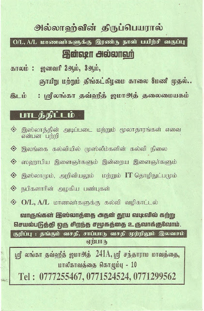 O/L , A/L மாணவர்களுக்கான இரண்டு நாள் பயிற்ச்சி வகுப்பு